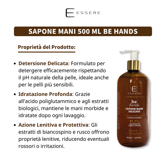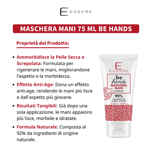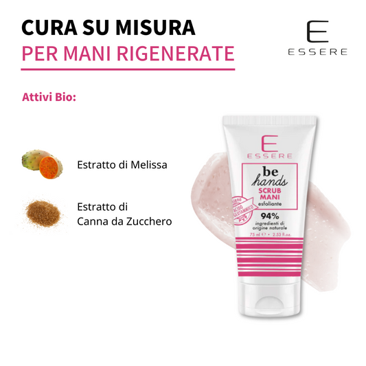 La collezione Be Hands è pensata per la cura quotidiana delle mani, unendo idratazione, nutrimento e protezione in formule studiate per ogni esigenza. Crema mani, scrub, maschera e sapone si completano a vicenda per garantire morbidezza e comfort, lasciando la pelle setosa e vellutata.