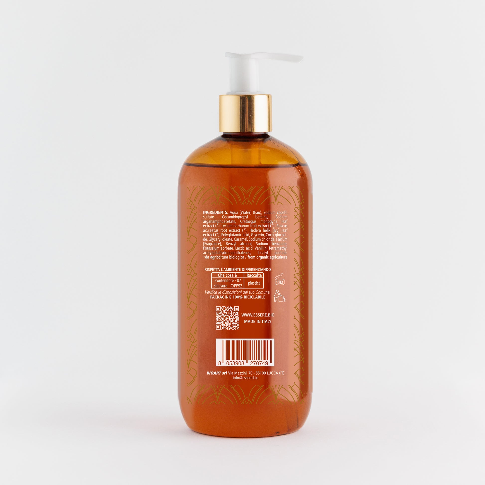 INGREDIENTS: Aqua [Water] (Eau), Sodium coceth sulfate, Cocamidopropyl betaine, Sodium arganamphoacetate, Crataegus monogyna leaf extract (*), Lycium barbarum fruit extract (*), Ruscus aculeatus root extract (*), Hedera helix (Ivy) leaf extract (*), Polyglutamic acid, Glycerin, Coco-glucoside, Glyceryl oleate, Caramel, Sodium chloride, Parfum [Fragrance], Benzyl alcohol, Sodium benzoate, Potassium sorbate, Lactic acid, Vanillin, Tetramethyl acetyloctahydronaphthalenes, Linalyl acetate.