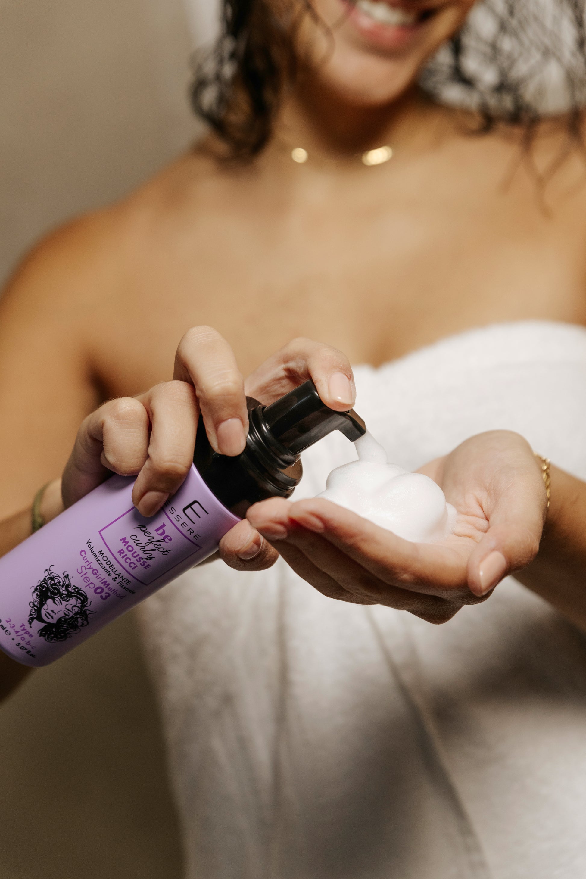 La Mousse Ricci Modellante è il terzo passo fondamentale nella routine Curly Girl Method di Essere. Ideale per capelli ricci e mossi, questa mousse offre una tenuta leggera ma duratura, senza appesantire i capelli. La sua formula, composta per il 96,2 % da ingredienti di origine naturale, è priva di siliconi, solfati e alcol, rispettando la struttura naturale del capello.